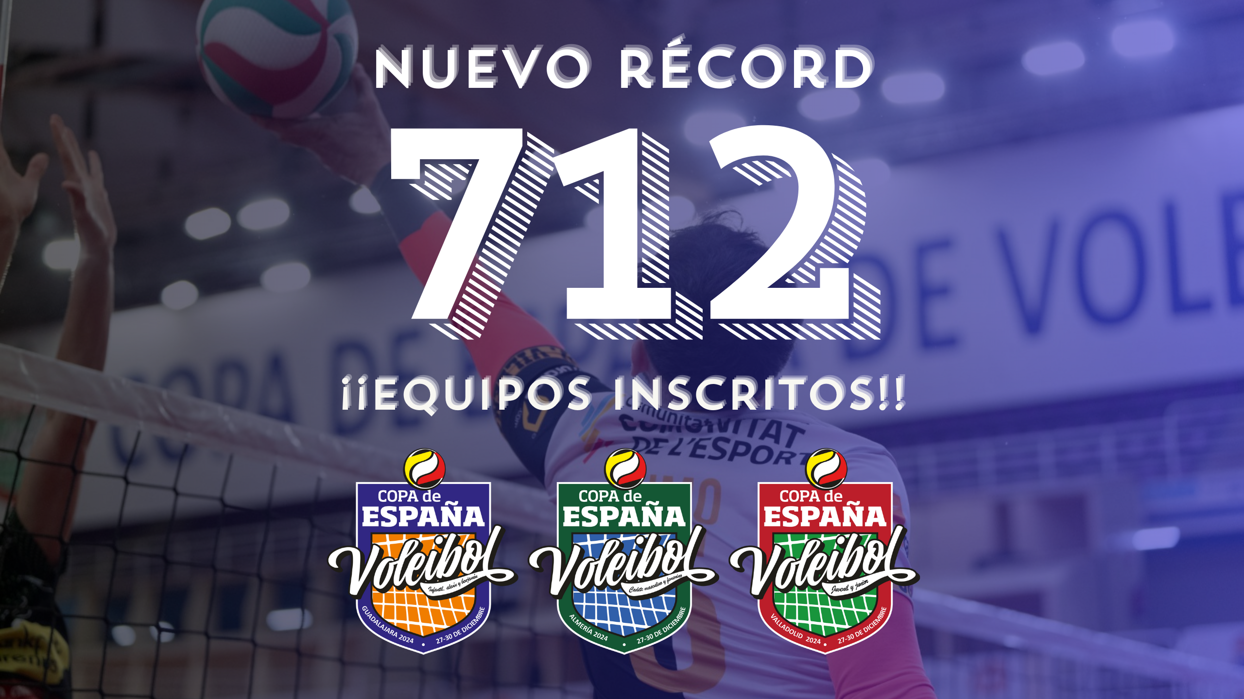 712 equipos se desplazarán a las tres sedes, la cifra más alta de participación del torneo, superando los 657 conjuntos de la edición de 2023. Unas cifras mareantes para situar a lo largo de cuatro días a Almería, Guadalajara y Valladolid como los puntos de referencia del vóley nacional.
