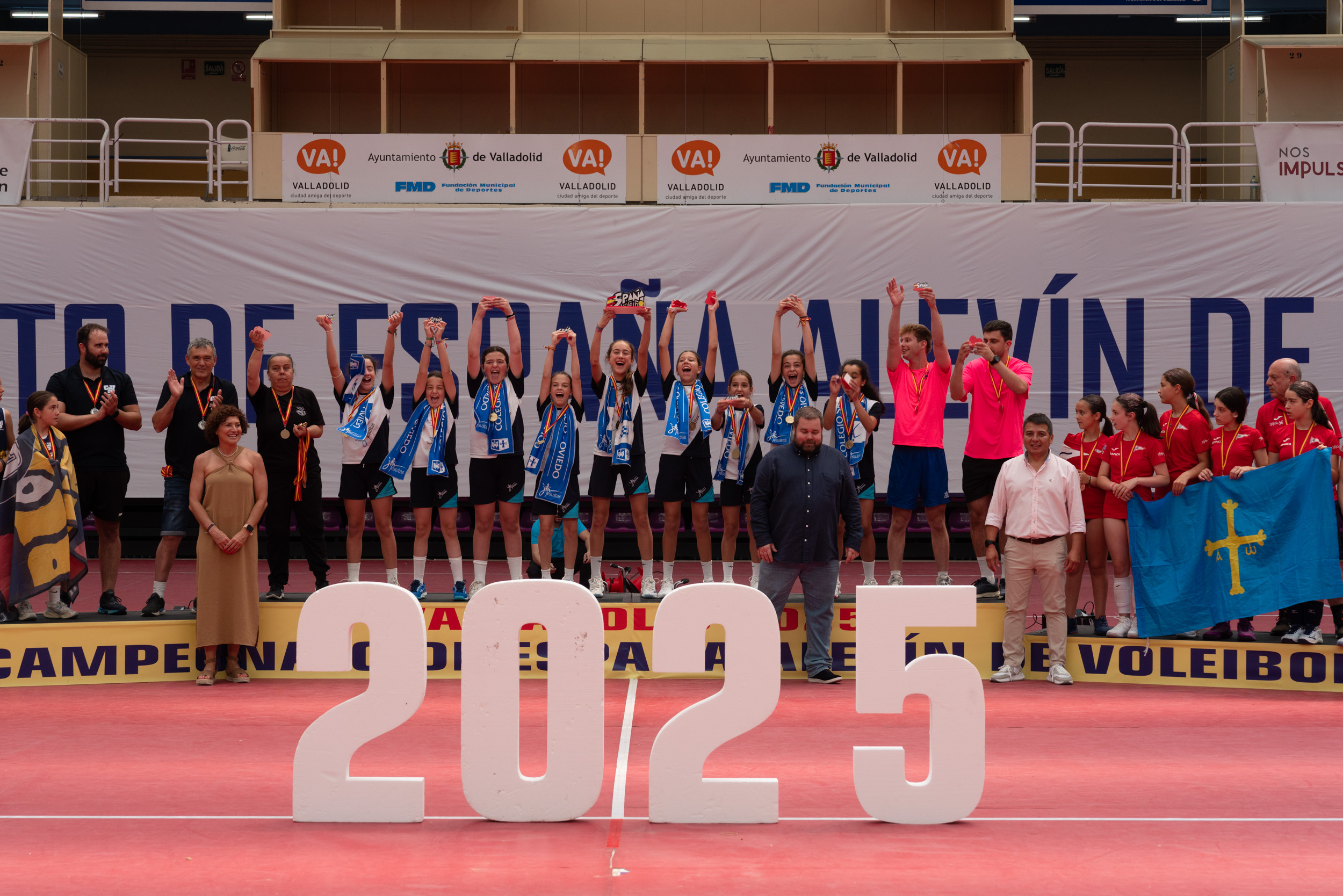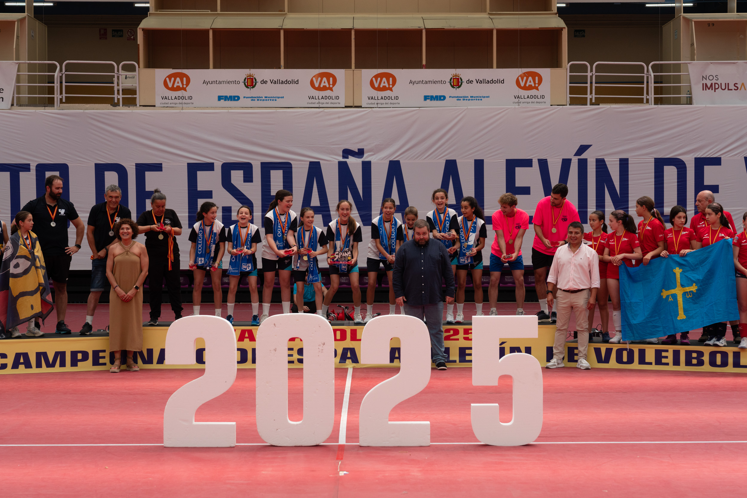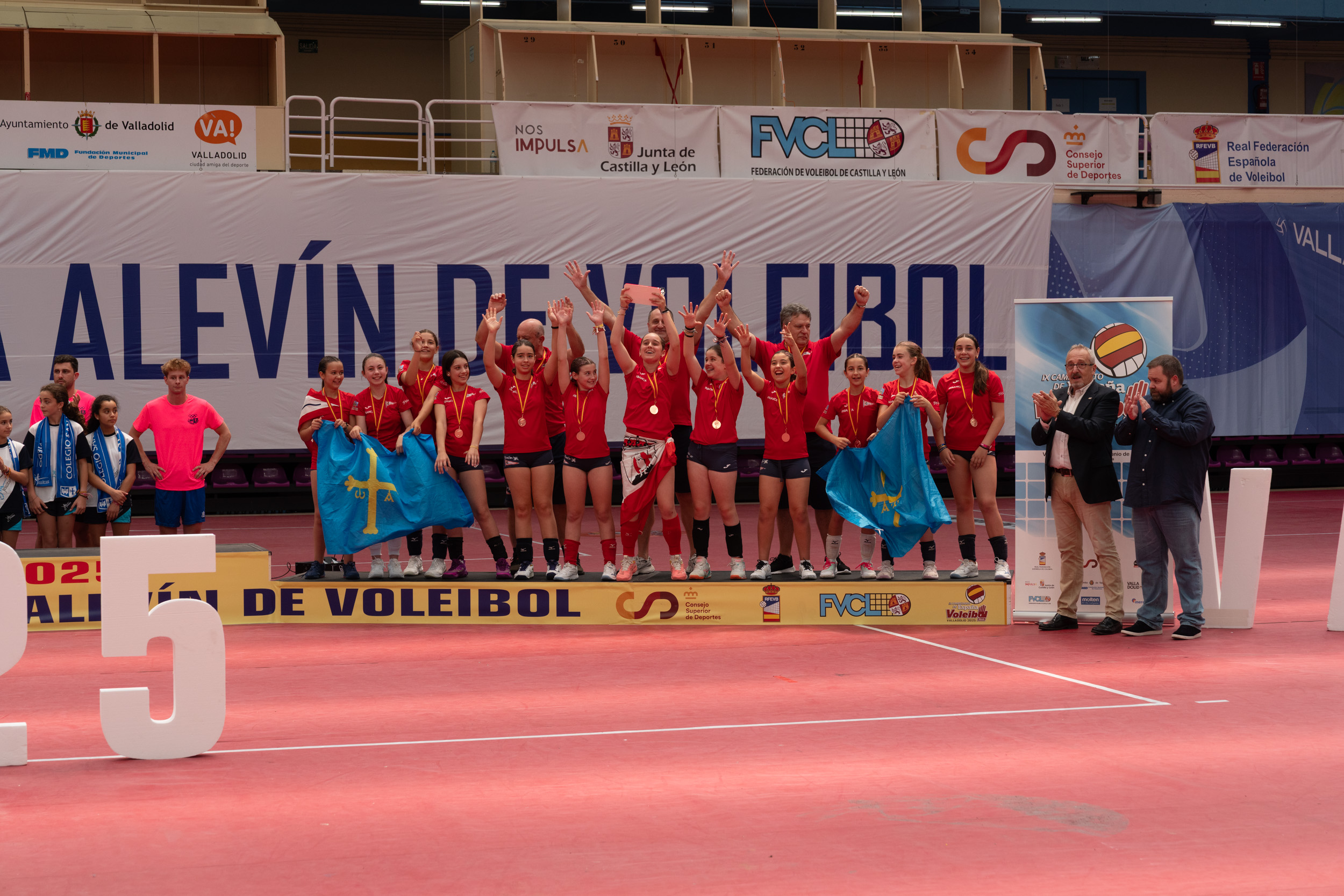 La concejala de Deportes del Ayuntamiento de Valladolid, Mayte Martínez, presidió la entrega de medallas, que contó con la presencia del presidente de la Federación de Voleibol de Castilla y León, Jesús Soria, junto con miembros de la Real Federación Española y del comité organizador.