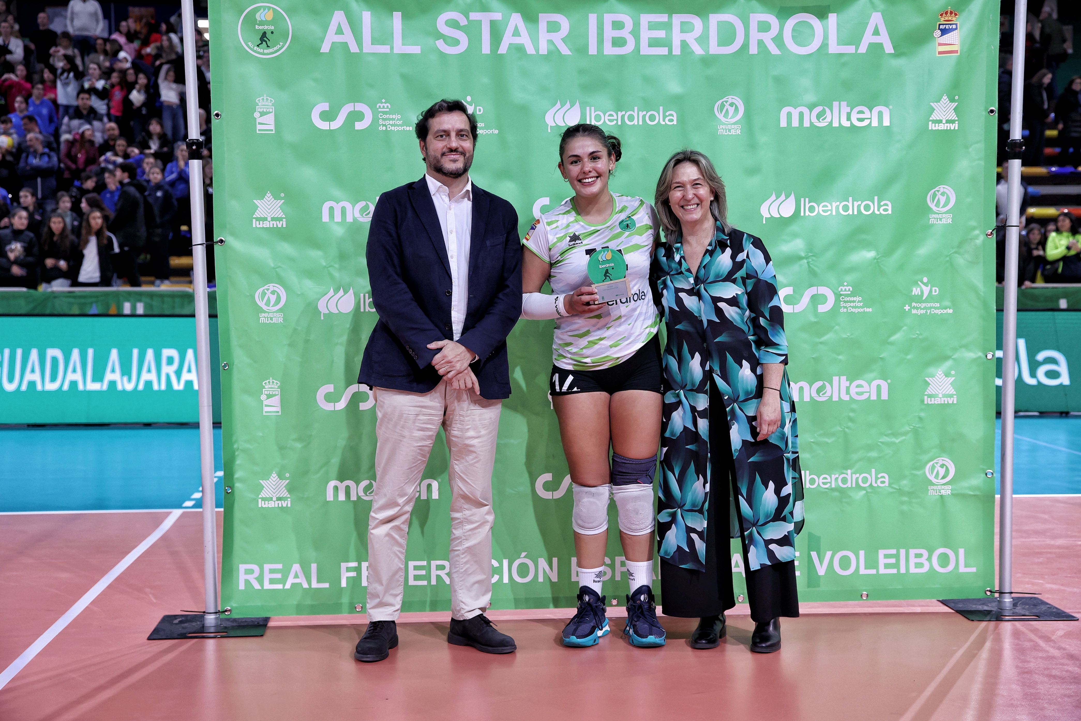 Partido de las estrellas de la Liga Iberdrola que se celebró en el Palacio Multiusos de Guadalajara ante aforo completo. A la finalización del encuentro, la alcaldesa de Guadalajara Ana Cristina Guarinos y el presidente de la Real Federación Española de Voleibol Felipe Pascual hicieron entrega a la receptora de Heidelberg Volkswagen Camila Hiruela del trofeo de MVP del All Star.