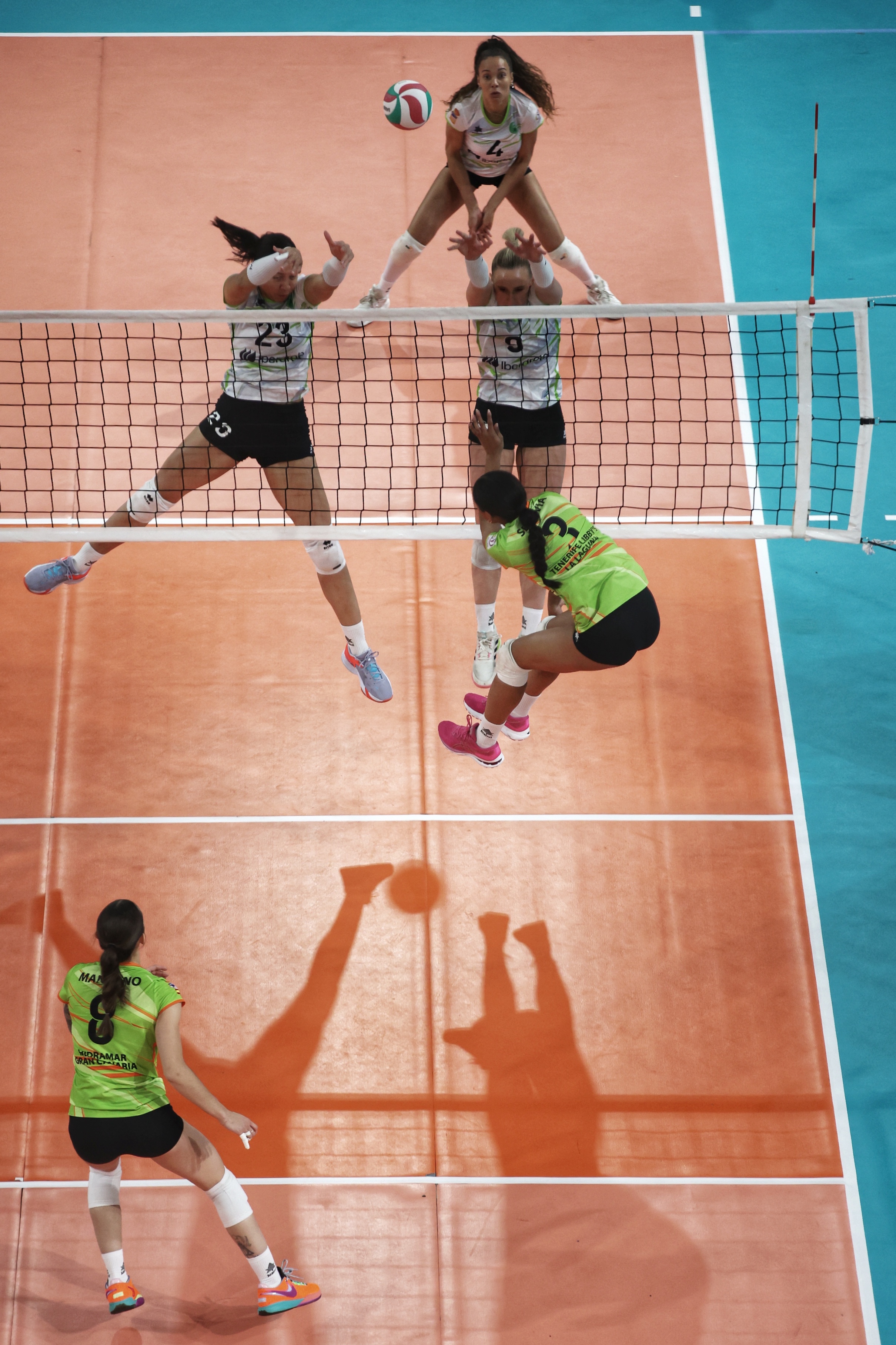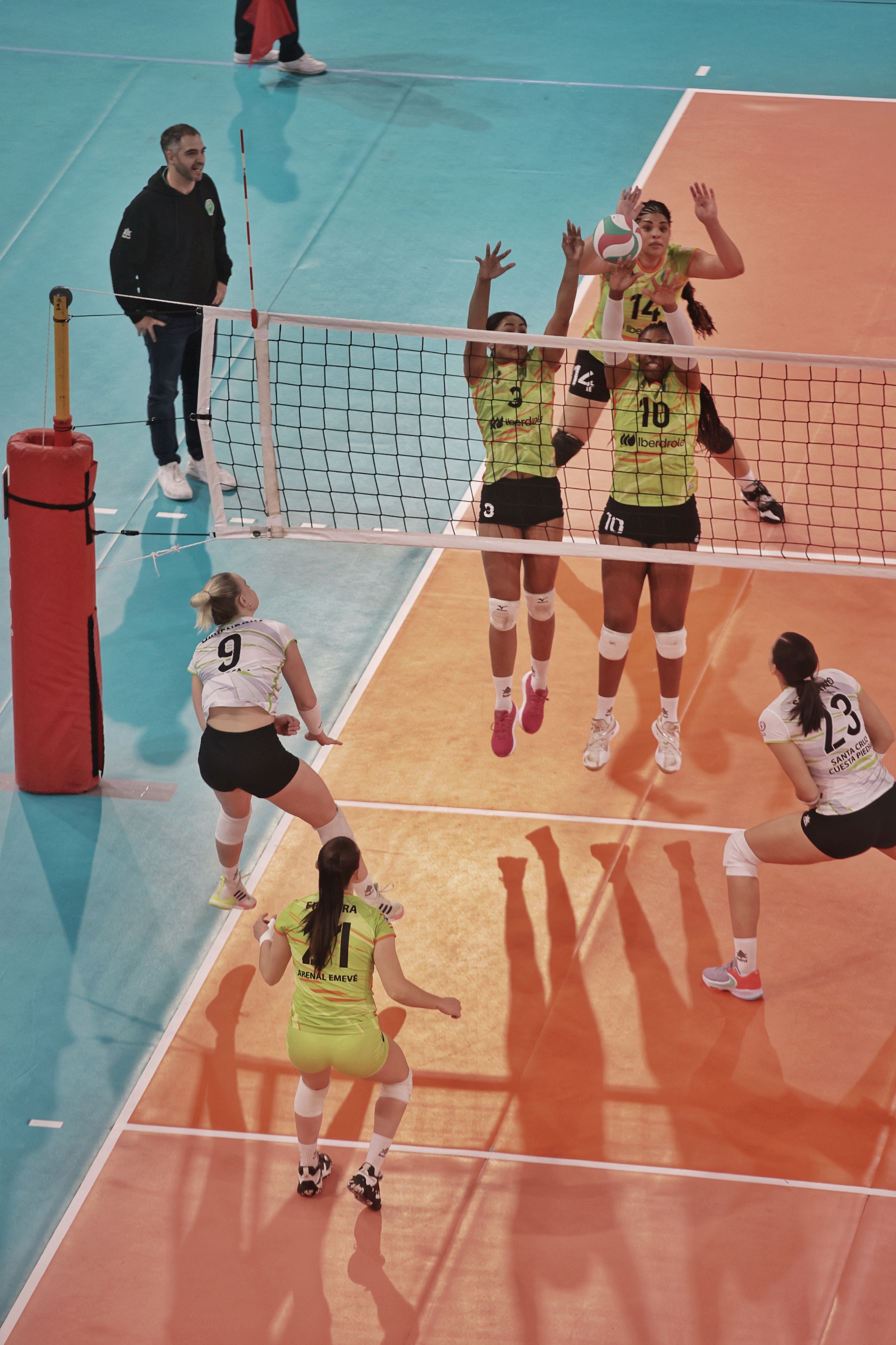 El equipo verde arrancó el enfrentamiento abajo en el marcador, pero pronto sería capaz de darle la vuelta al guion de la batalla para dominar el electrónico con firmeza una vez superado el ecuador de la manga. Linda Costa inspirada en el centro de la red, Isabel Barón intratable en la retaguardia y Saray Manzano infalible desde cualquier ángulo del campo, complicaron el juego del equipo blanco, para, tras un final muy ajustado, cerrar el set a su favor por 27-25.