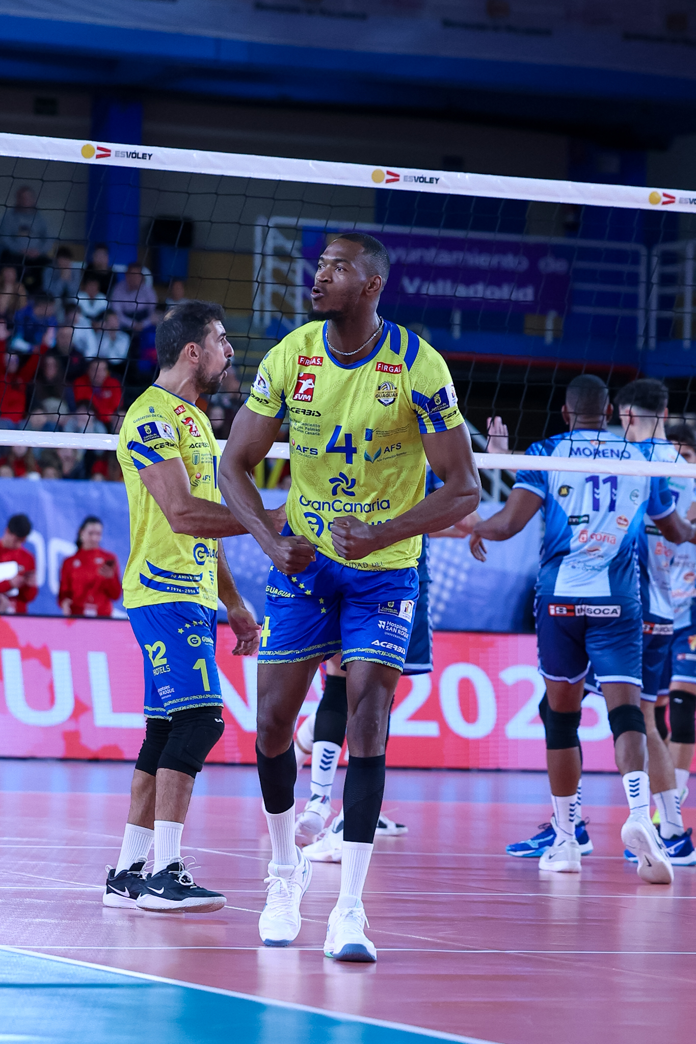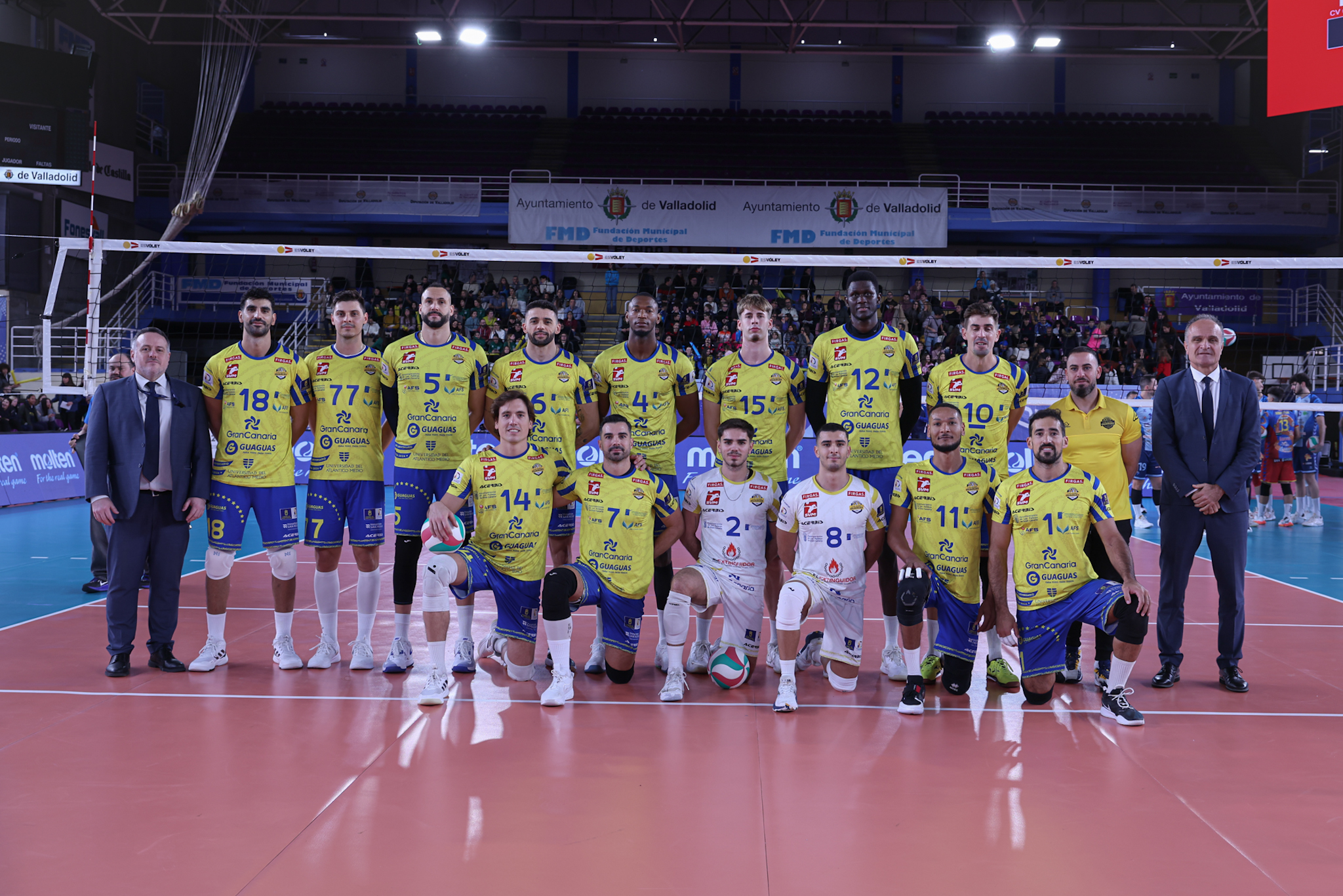 El partido comenzó con dos septetos de ocasión. Por parte de Guaguas, el premiado Miguel Ángel de Amo ha sido el colocador, acompañado de Hélder Spencer, Osmany Juantorena, Nico Bruno, Walla Souza y, como líbero, Unai Larrañaga. En el lado de Soria, el capitán Lucas Lorente ha entrado como colocador junto con uno de los mejores líberos de la Superliga, Arnau Masià. A su alrededor, Omar Hoyos, Viktor Lindberg, Azddin Mimoun, Juan Pablo Moreno y Joan Domènech.