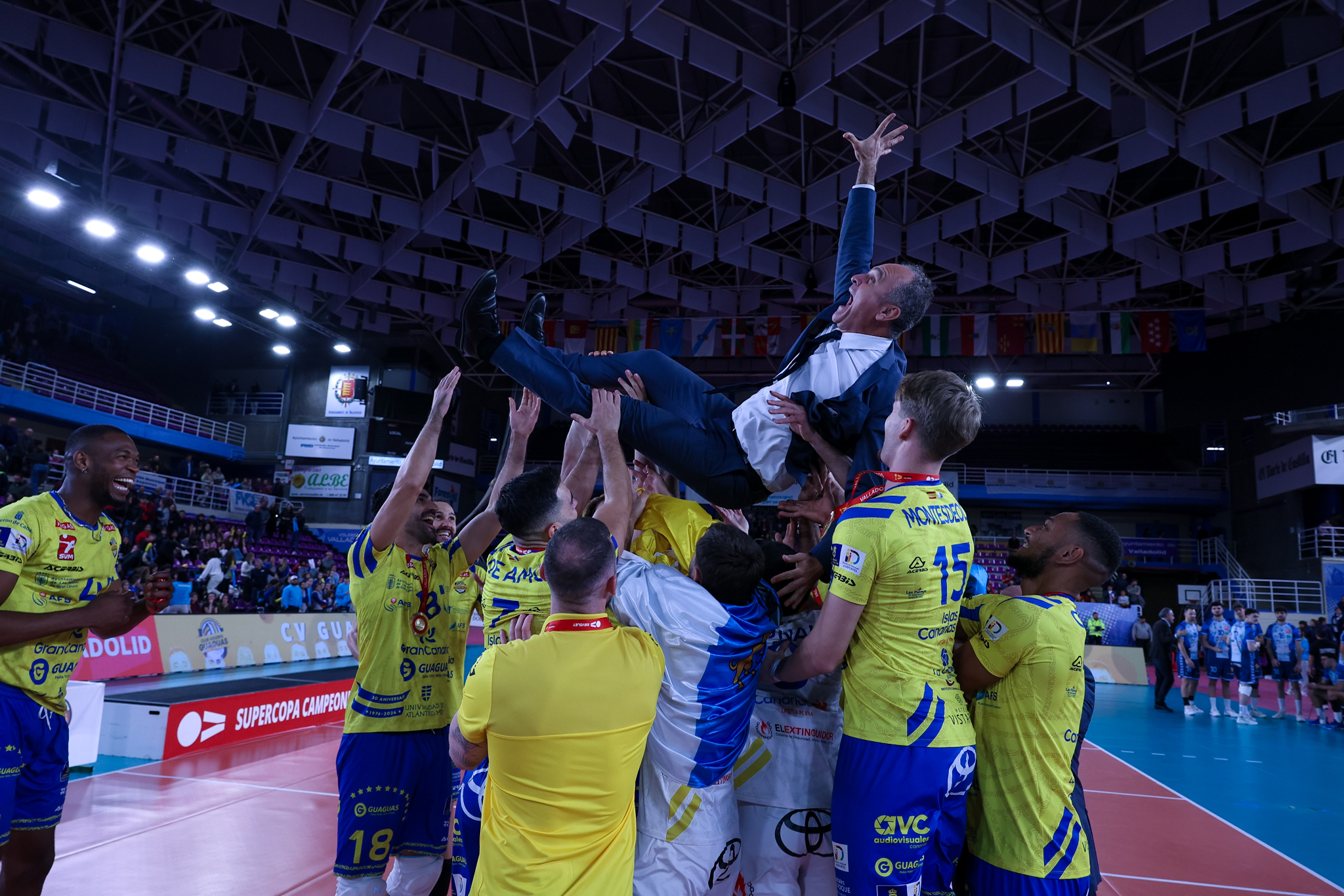 CV Guaguas logró imponerse este lunes, 29 de diciembre, a Grupo Herce Soria Voleibol en un Pabellón Pisuerga con más de 4000 asistentes (26-24/25-23/25-23). Los grancanarios consiguen en Valladolid una cuarta Supercopa que es, a su vez, su duodécimo título. Por su parte, los sorianos no pudieron materializar la revancha de 2023 y firman su segundo subcampeonato. El encuentro, arbitrado por Javier Pedrosa y Quin Ventura, llevó emoción y buen voleibol al entregadísimo público vallisoletano en el marco de la Copa de España 2025.