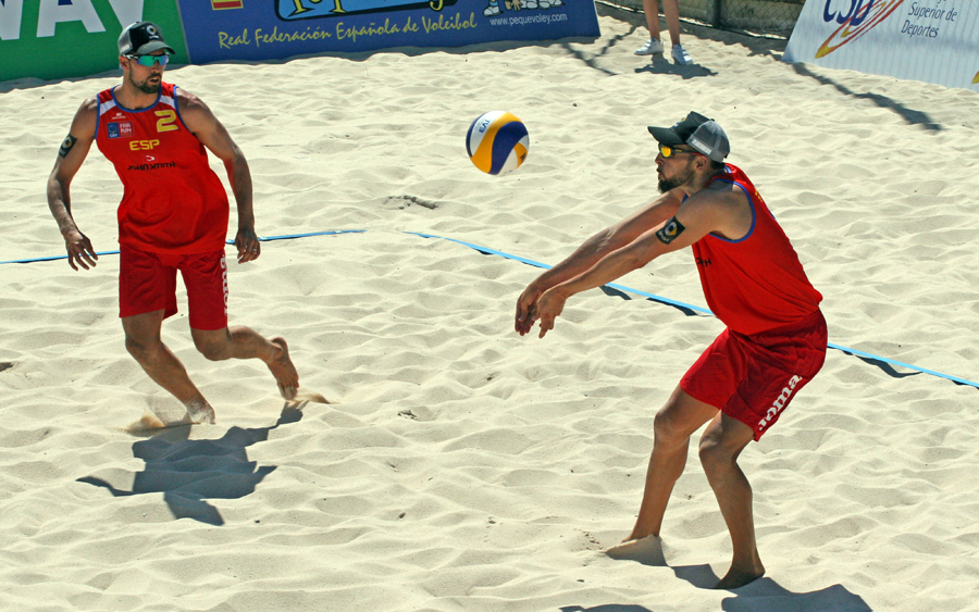El gran nivel de juego de España se extendió al cuadro masculino. Los nacionales también cerraron la ronda con dos victorias y evitaron el Golden Match con dos contundentes triunfos. Comenzaron con potencia Pablo Herrera y Adrián Gavira, que batieron a los eslovenos Ponikvar/Mohoric por 2-0 (21-16, 21-14). Igual poderío demostraron Fran Marco y Christian García, que superaron a Bedrac/Zemljak también en dos clarísimos sets 2-0 (21-13, 21-15). Así, certificaron los nacionales su pase a los partidos que determinarán los ganadores del torneo. Los españoles se enfrentarán a Suiza, que derrotó a Bélgica en dos partidos, si bien los suizos tuvieron que emplearse a fondo para doblegar a los duos belgas.