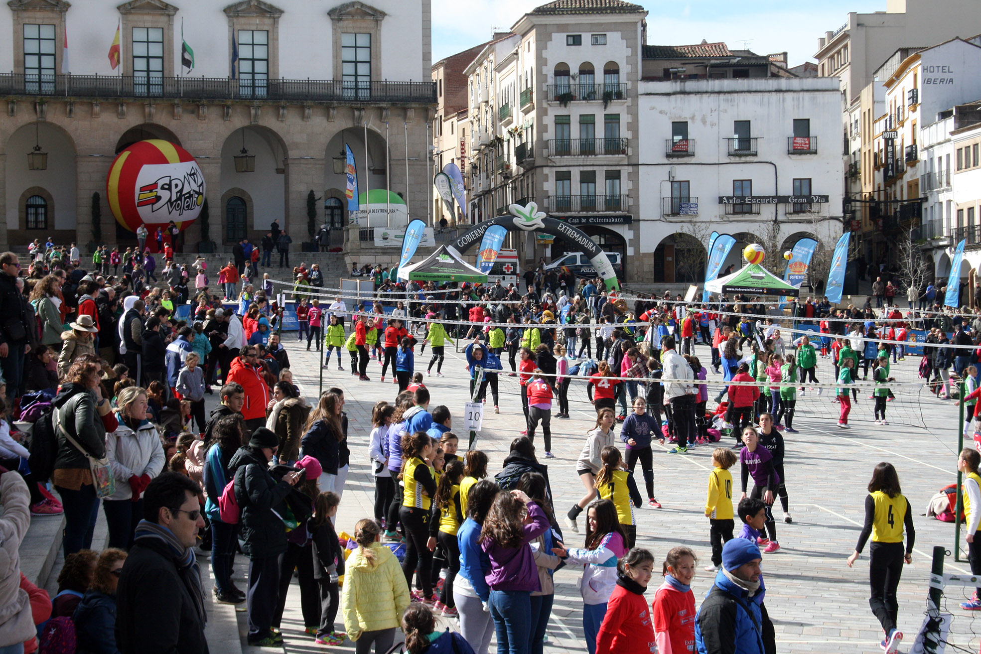 La Plaza Mayor de Cáceres acogió un espectacular Evento Pequevoley