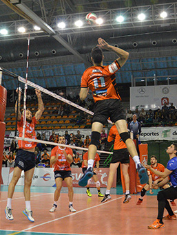 Unicaja Almería - Ushuaïa Ibiza Vóley Raúl Muñoz superando a sus excompañeros