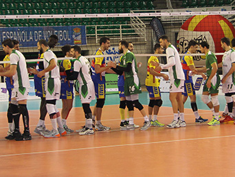 Unicaja Almería - Ushuaïa Ibiza Vóley Los dos equipos se saludan antes del inicio del encuentro