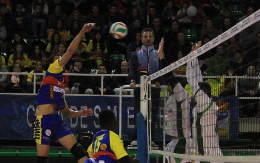 Unicaja Almería - Ushuaïa Ibiza Vóley Gerard Osorio estrella su remate en el bloqueo ahorrador