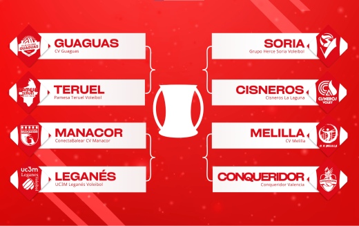 Llegado el ecuador del sorteo, solo quedaba conocer la posición de los cuatro equipos restantes para completar todos los enfrentamientos. La mano inocente de Pablo Herrera, seis veces olímpico en la modalidad de Vóley Playa y ganador de una medalla de plata, fue la encargada de confeccionar el cuadro final con la entrada de Conqueridor Valencia, Pamesa Teruel Vb, Cisneros La Laguna y UC3M Voleibol Leganés. A continuación, todos los enfrentamientos deparados por el sorteo: