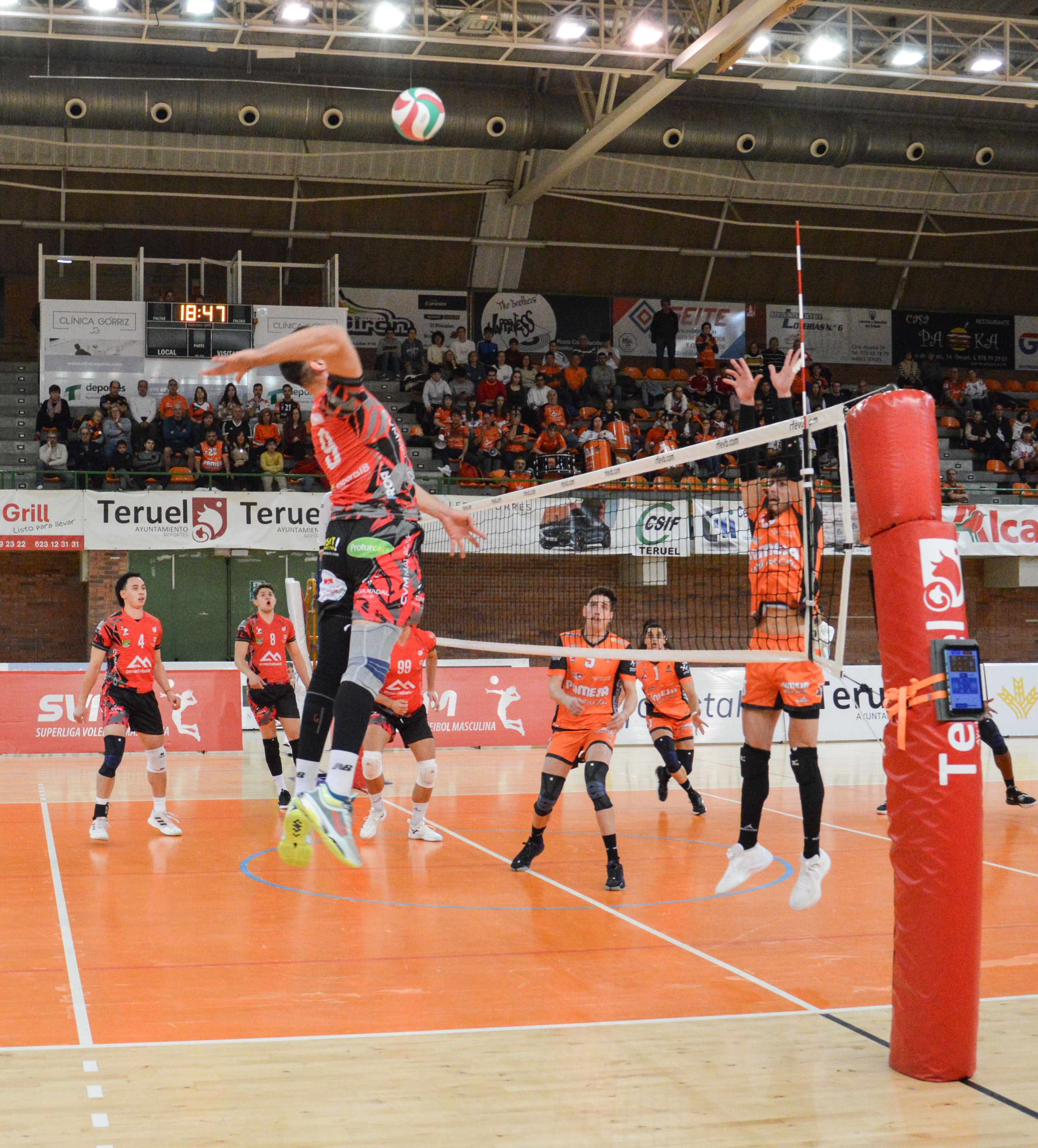 Otro enfrentamiento resuelto en el tie-break fue el que protagonizaron Pamesa Teruel Voleibol y ConectaBalear CV Manacor en Los Planos. El equipo balear, al límite de la zona peligrosa de la clasificación, necesita ganar y sumar. Con este objetivo en mente asaltaron el templo turolense en la tarde del sábado. El cuadro de Máximo Torcello tuvo que sacar su artillería pesada, con Miguel Ángel Martínez Palacio como estandarte, para aplacar a un incansable rival. Los locales se llevaron el triunfo por la mínima, alcanzando la quinta posición en la clasificación global. Del choque entre turolenses y baleares también destacó el trabajo en ataque de Coltyn, quien sumó 20 puntos y cuajó una gran actuación.