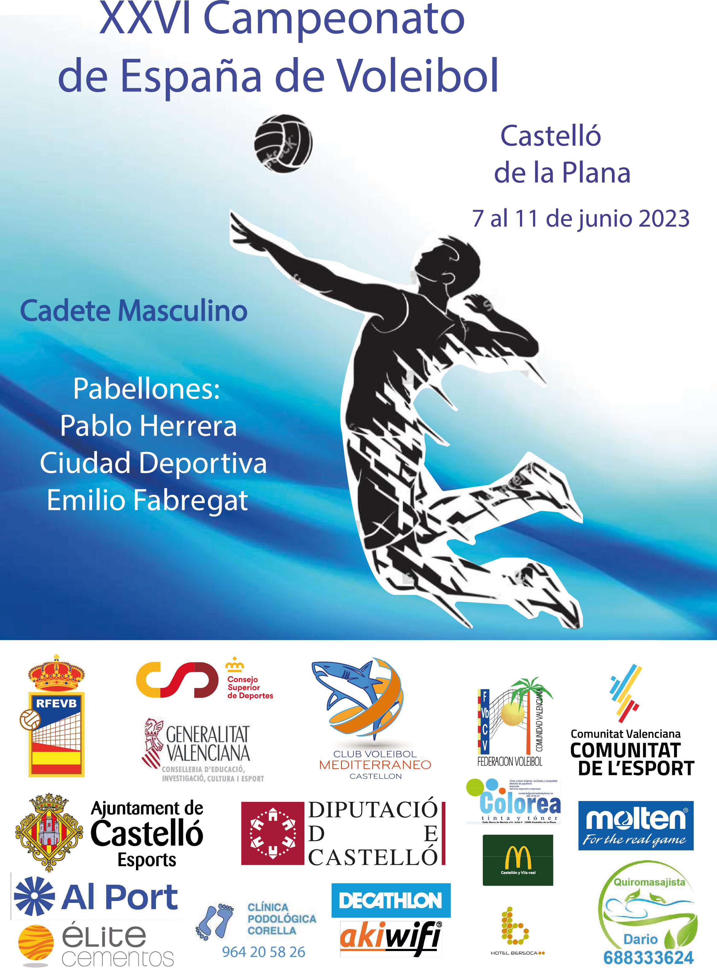 Castellón de la Plana acoge por tercer año consecutivo el Campeonato de España Cadete Masculino. Desde el miércoles 7 y hasta el domingo 11 de junio, los 24 conjuntos participantes lucharán por suceder en el palmarés al anfitrión, CV Mediterráneo Castellón vencedor de la edición anterior.