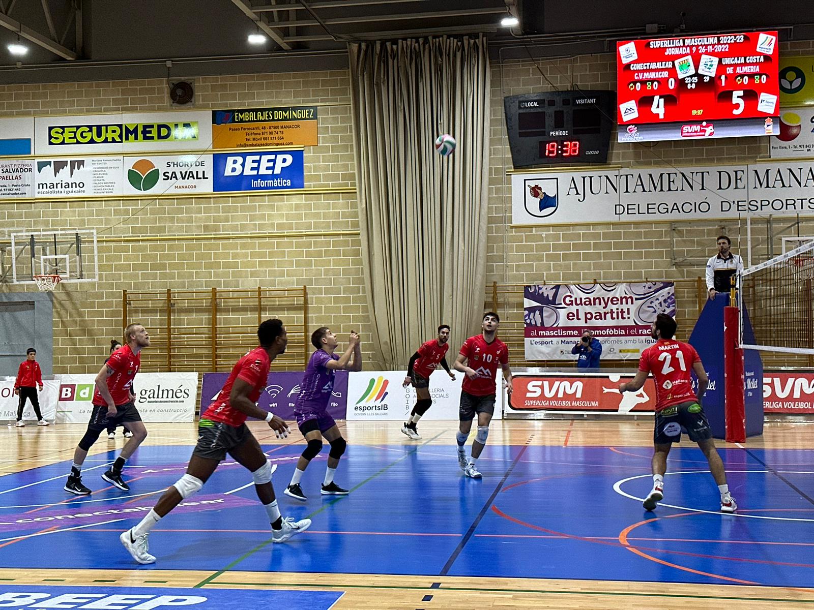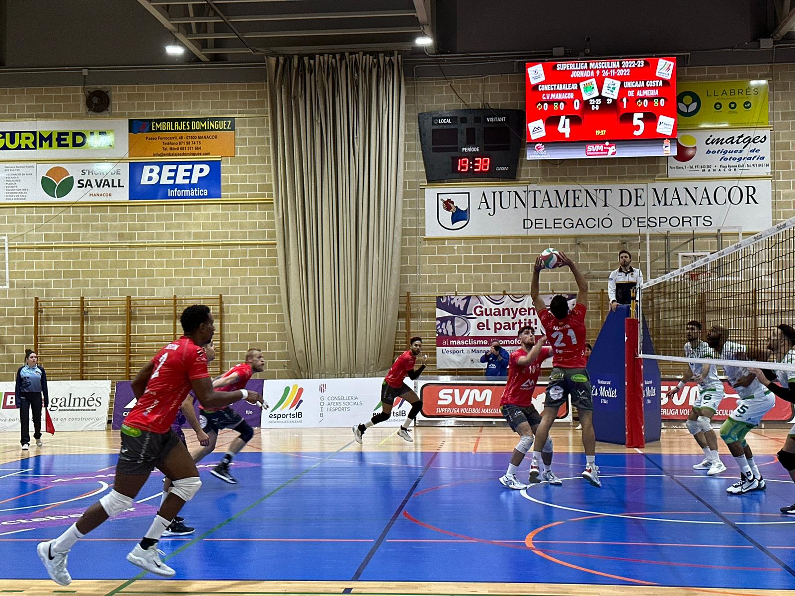 Unicaja Costa de Almería escala posiciones en la clasificación tras su importante y valiosa victoria en la pista de Conectabalear CV Manacor. Los ahorradores dominaron con su saque y bloqueo, y de la mano de Víctor Rodríguez y Marco Ferreira controlar los intentos de reacción de los baleares. El trabajo de Héctor Salerno y Joaquín Monteagudo no bastó para ralentizar el ritmo anotador de los pupilos de Manolo Berenguel, que suman un valioso triunfo para acercarse a las primeras plazas