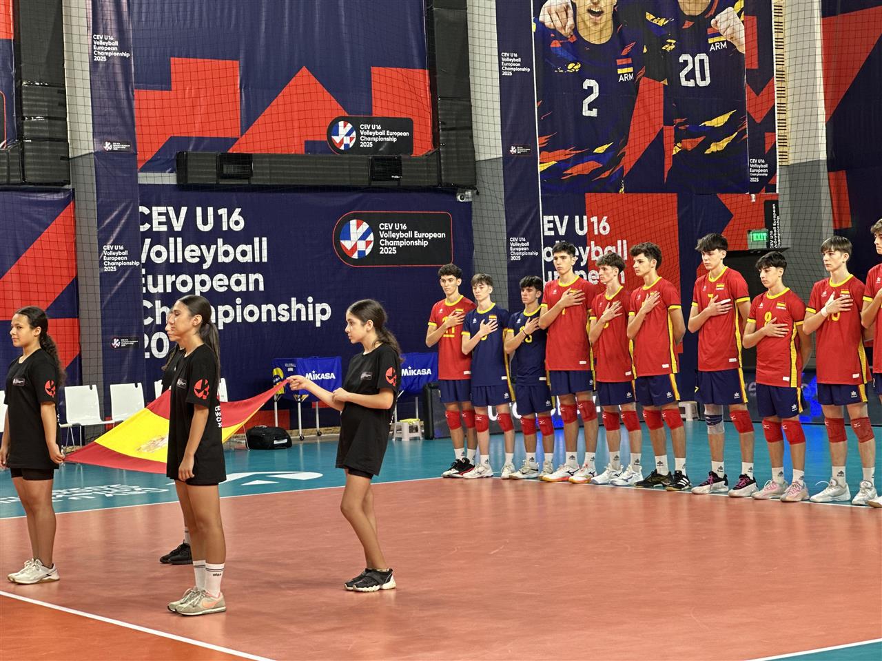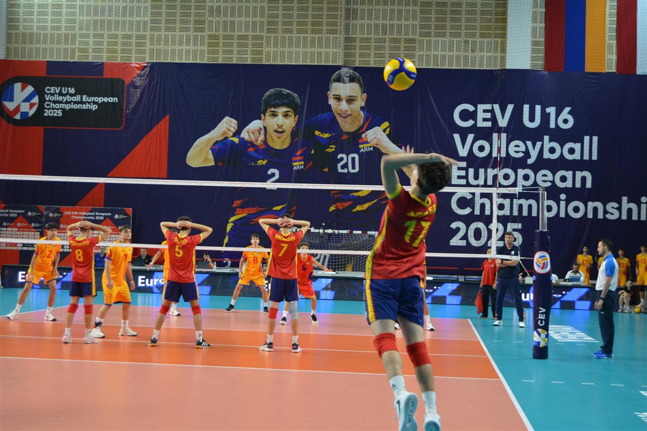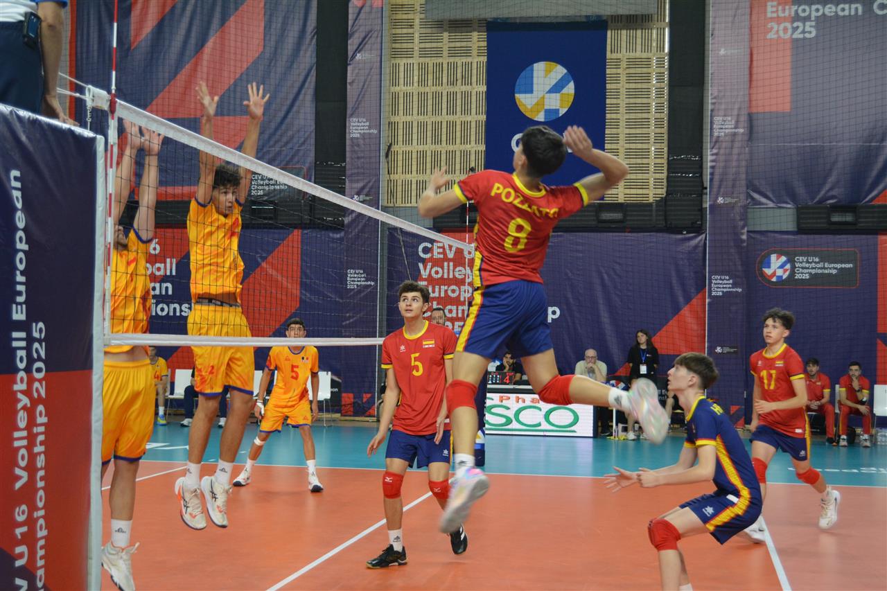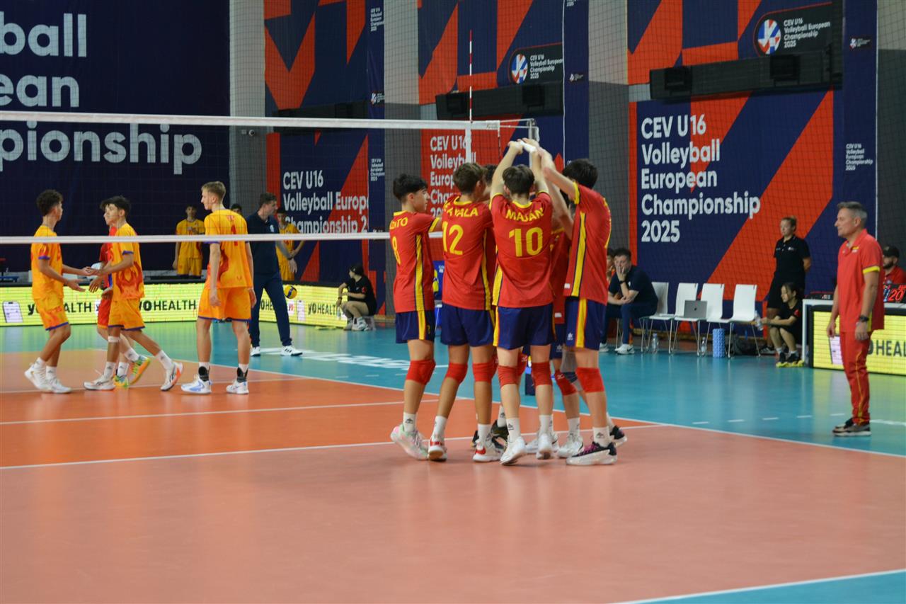 España se impuso con claridad a Rumanía en el Campeonato Europeo Sub-16 disputado en el Gazprom-Armenia Sport Complex de Yereván, con parciales de 25-21, 25-16 y 25-20 en un triunfo limpio por 3-0 en sets.