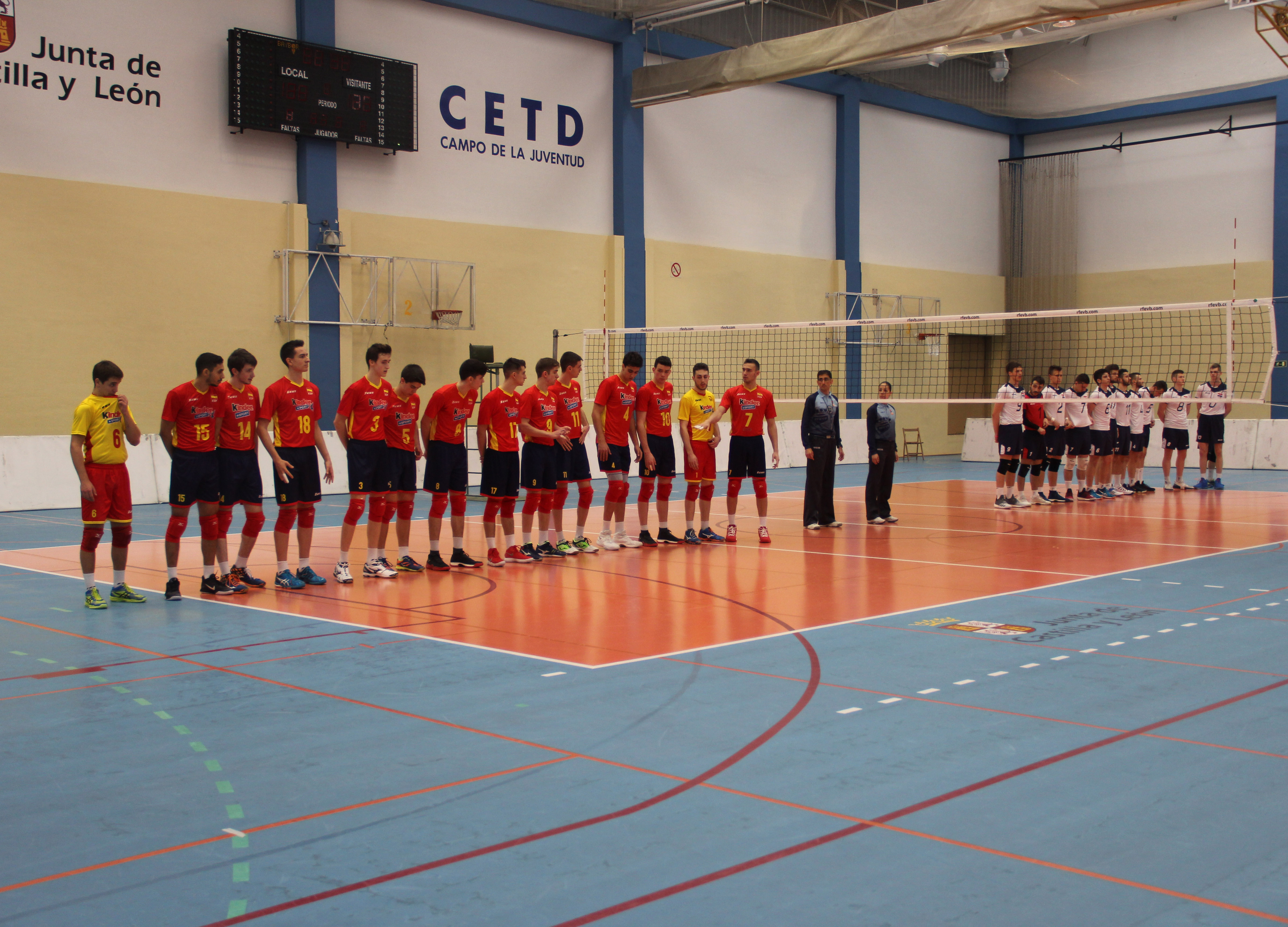 España mostró su solidez en el primer partido superando a Croacia en el Campo de la Juventud de Palencia por un claro 3 a 0. Los jugadores de Ricardo Maldonado dominaron con claridad el partido aprovechando el buen funcionamiento del bloqueo español que impedía a los atacantes croatas puntuar con facilidad.