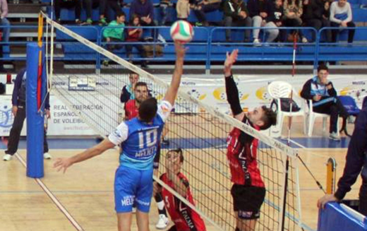 En el primer set los baleares se pusieron por delante, sin embargo los melillenses salieron al campo con intención de darlo todo y consiguieron igualar el electrónico. A partir de aquí, los puntos fueron subiendo uno a uno en los respectivos marcadores, alternándose ambos equipos el liderato de la puntuación. Así se llega al final del periodo, en el que el equipo visitante tuvo hasta 3 puntos de set. Los locales aprovecharon la única oportunidad que se les presentó y con una finta de Vicente Monfort, se hacían con el primer parcial por la mínima.