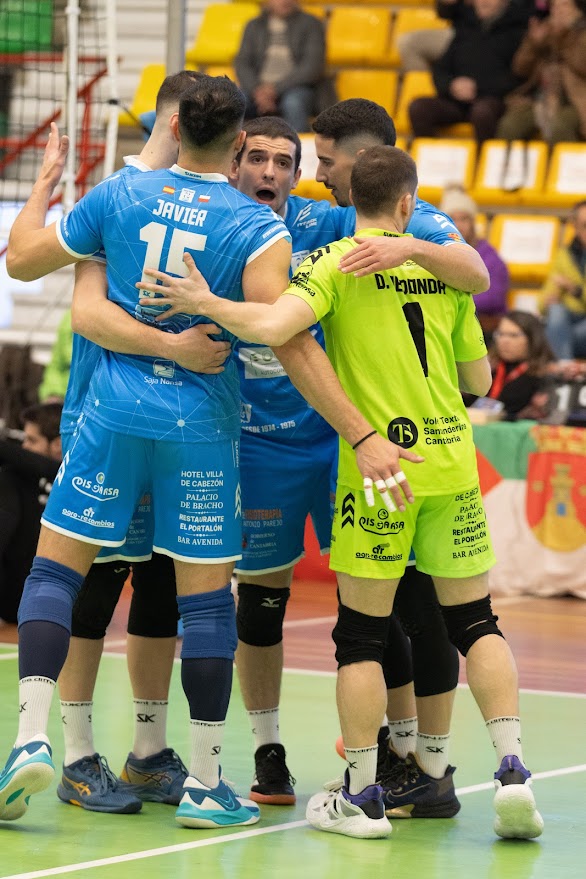 Leganés esperaba rival entre los dos mejores equipos de la primera mitad de temporada en el Grupo A, el Voley Textil Santanderina y el Intasa San Sadurniño, único equipo que le ha derrotado esta temporada en liga y el encuentro estuvo a la altura del impresionante ambiente que se vivió en las gradas. Vega y Yoel puntuaron de inicio, bien secundados por un Chema Hernández que además de distribuir acertó al bloqueo y con un saque directo que suponía el 10-9. Pero el Intasa San Sadurniño reaccionó a lo grande para darle la vuelta al marcador, con Roi Losada encontrando a Marcos Blanco por las alas y a Luis Fernando Meza en el centro, ayudados por el gran sacrificio colectivo en defensa. Ese esfuerzo dio sus frutos para permitir a los de Pablo Gómez Parga hacerse con ese primer set por 21-25, obligando al Voley Textil Santanderina a ponerse el mono de trabajo para dar la vuelta a una situación complicada, más tras el parcial de 0-4 de un Intasa San Sadurniño muy metido en el inicio del segundo set.